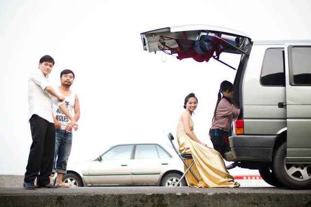 左起為新郎、攝影師A-PAUL、司機黃大哥(說也巧,早期貢丸麻與他在同一間婚紗共事過呢!!)