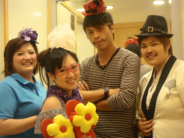 當天拍完照後,大家開始惡搞... 連攝影師都被我抓來畫翹鬍子。 還逼每人戴帽子.... (這時就很慶幸我在櫃子裡準備了各式各樣的帽子....)