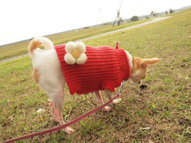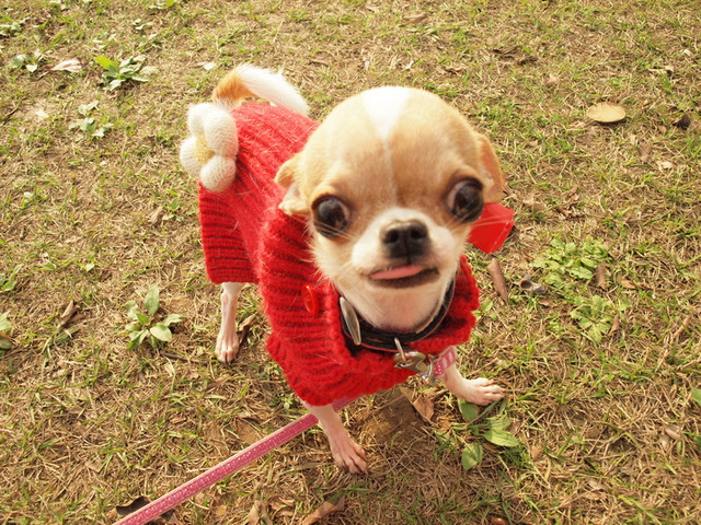 狗子們綁著紅包袋討吉利,這是我們家每年必做的事。