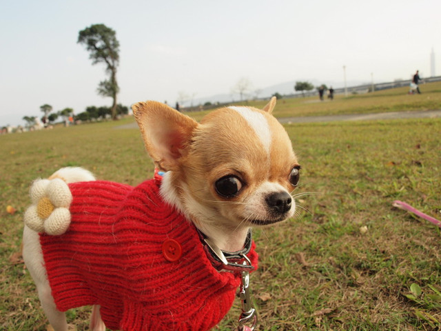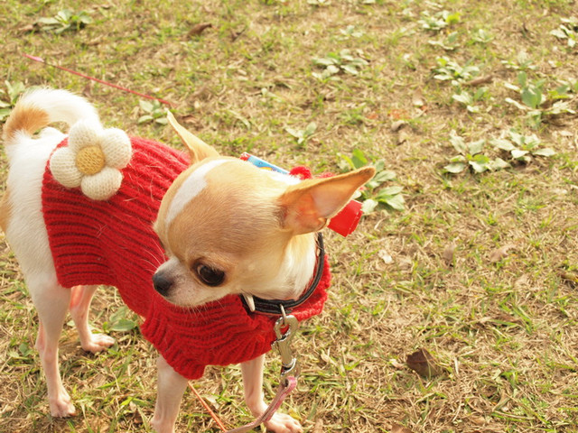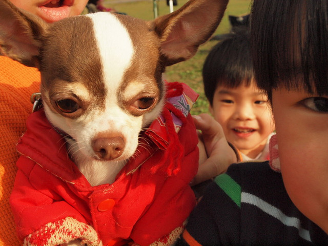 我很享受在冬天裡,帶狗到公園曬太陽。
